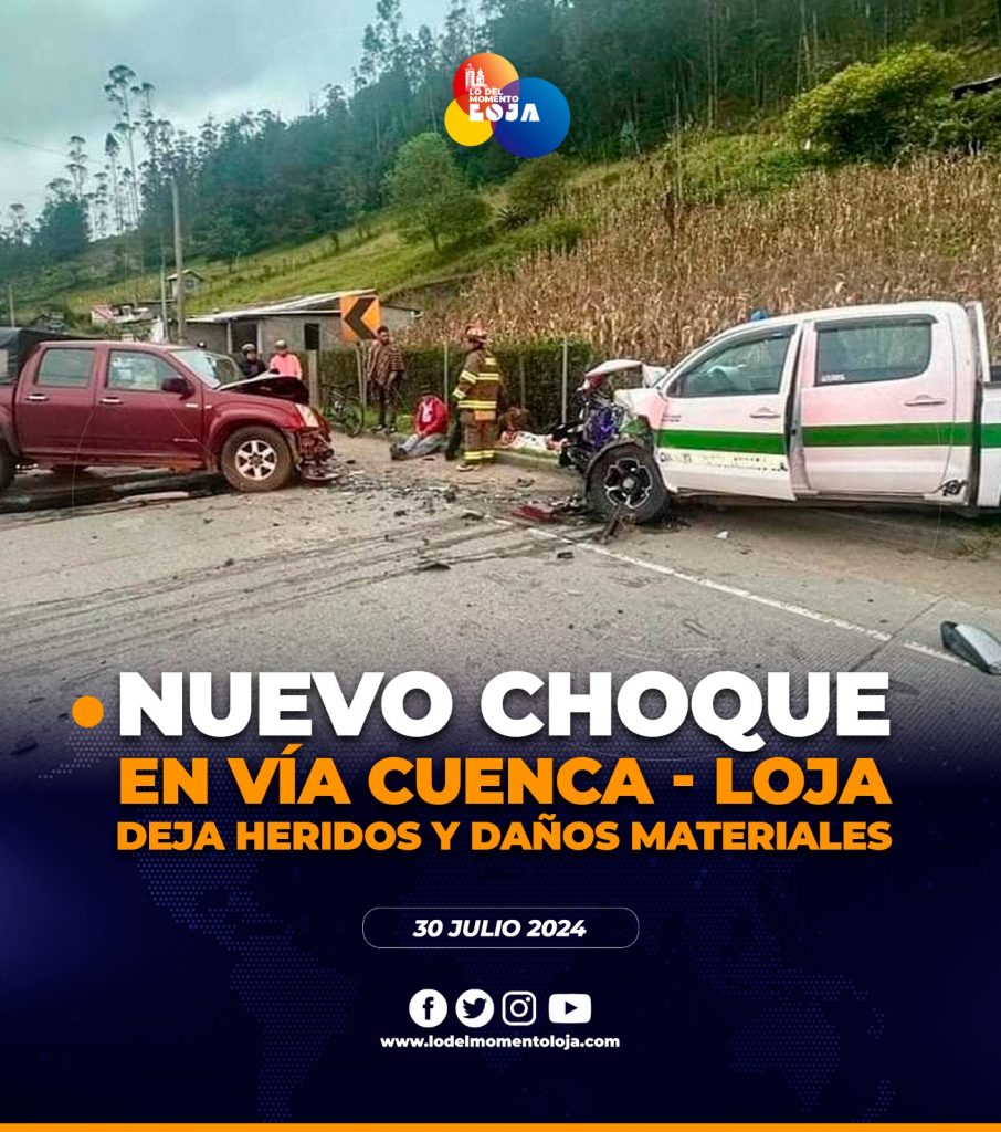 😱💥🚘 ¡Otro choque! Se registró un accidente de tránsito en la entrada a la parroquia de Tarqui, via Cuenca – Loja. Según información extraoficial al menos 3 personas resultaron heridas. Además se registran cuantiosos daños materiales.
