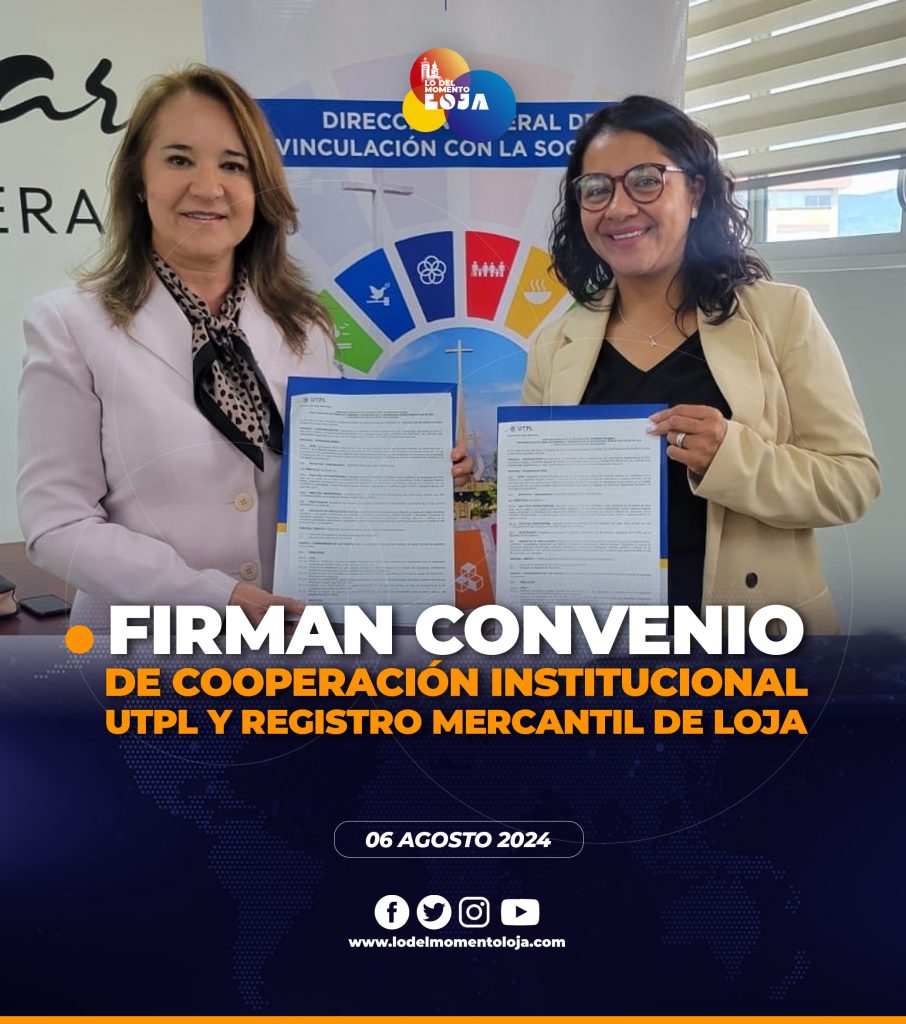 📄✒️🤝🏻 ¡Gran convenio! La UTPL y el Registró Mercantil del Cantón Loja, firmaron un convenio de cooperación institucional para prácticas de todas las carreras y programas y la ejecución de proyectos de vinculación, todo esto como aporte al desarrollo integral de los estudiantes, el sector empresarial y la sociedad.