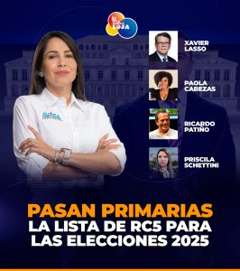 🔵🗳️🟣 ¡RC5 y ADN7 listos! El pasado 10 de agosto los movimientos RC y ADN hicieron sus primarias para postular a las figuras que podrían estar en la próxima papeleta de las elecciones 2025, en el caso RC, figuras como Xavier Lasso, Paola Cabezas, Ricardo Patiño y Priscila Schettini estarían para la Asamblea Nacional; mientras que por ADN, desde Annabella Azin, Niels Olsen, Sade Fritschi y Esteban Torres, serían también las figuras a la asamblea.