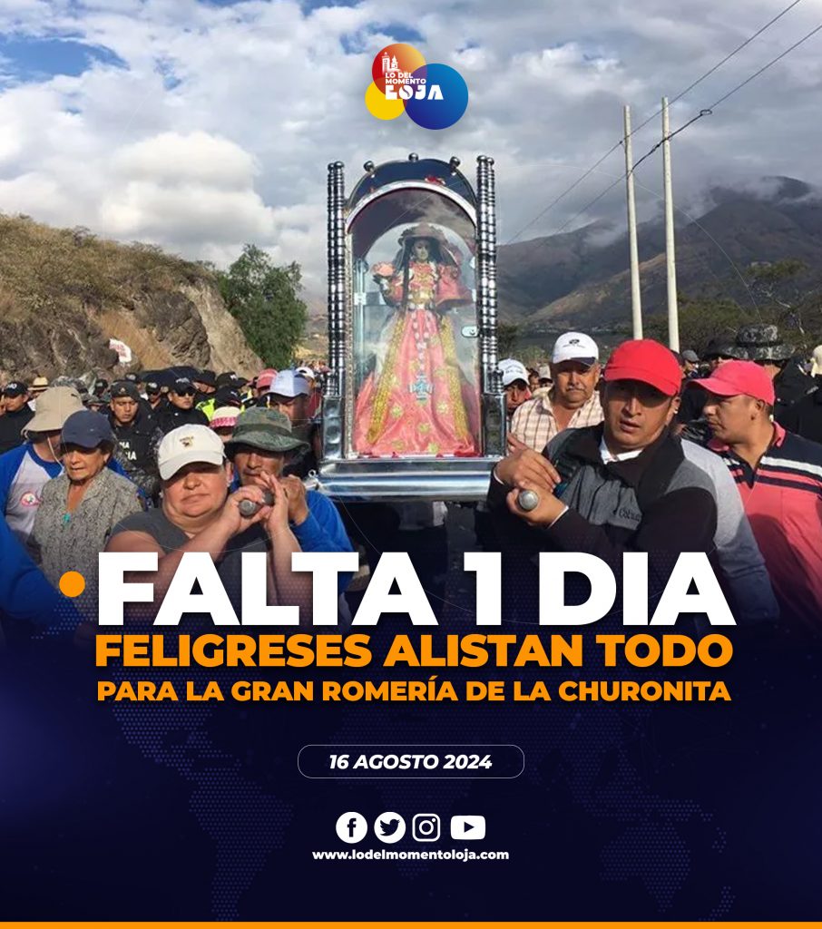Su recorrido culminará el próximo 20 de agosto con su llegada a la iglesia La Catedral donde se tiene previsto que la acompañen alrededor de 4 millones de peregrinos. “La Churonita” permanecerá en la ciudad de Loja hasta el 01 de noviembre donde se celebrarán diversas festividades en su honor.
