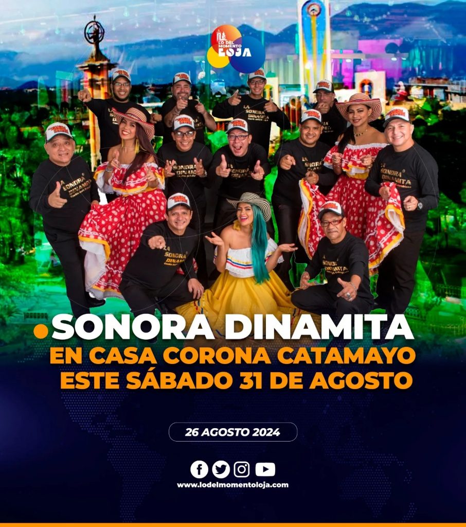 ¡Buen show y económico! Este fin de semana en la ciudad de Catamayo sigue siendo el epicentro de los mejores eventos artísticos y a costos bastante accesibles para cerrar el mes de agosto, el sábado 31 de agosto llega La Sonora Dinamita a Casa Corona en un concierto que no se lo pueden perder, aquí, podrá disfrutar de varios ambientes, tanto en el concierto como el área de disco y por tan solo UDD 5,00.