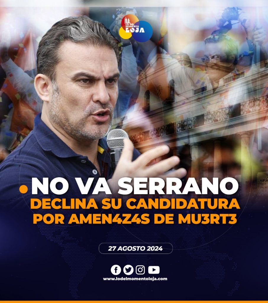 🟠🗳️👋🏻 ¡La cosa es densa! El precandidato presidencial de Centro Democrático, José Serrano, anunció su declinación debido a que no existen las condiciones para su arribo al Ecuador, mencionando hasta la noche de ayer, la respuesta a su pedido ya que ha sido alertado con amenazas contra su vida. “Las condiciones de seguridad en el país son inaceptables, y no puedo exponer a mi familia” dijo Serrano.