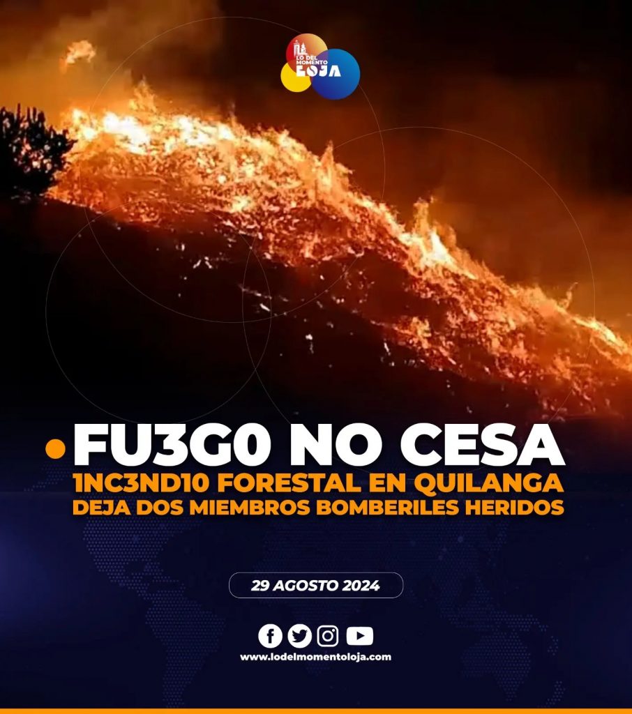 👨🏻🚒🔥🚒¡SOS Quilanga! El 1nc3nd1io forestal de gran magnitud, ha consumido más de 1170 hectáreas de vegetación en Quilanga, en la provincia de Loja, volviéndose incontrolable, pese a la ayuda brindada de los efectivos de las diferentes provincias . Además, según la Secretaría de Gestión de Riesgo, al menos dos personas han resultado heridas: un bombero de Zamora, quien fue trasladado a Loja con estado de salud estable, y un bombero de Quilanga, quien tenía heridas leves y fue dado de alta. De manera extraoficial se conoce que existe un morador del sector, también ha sido afectado por el flagelo con qv3m4dvr4s.