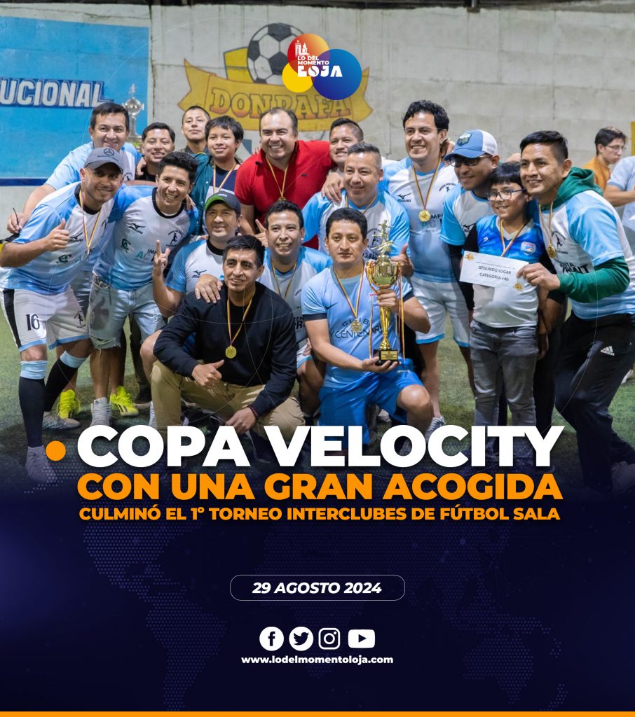 ¡Gran acogida! El pasado 24 de Agosto, se llevó a cabo la gran final del I Torneo Interclubes, de fútbol sala Copa Velocity, en la cual los diferentes equipos demostraron el talento dentro de dicha disciplina, en las 3 categorías: Abierta masculino, Abierta femenino, y categoría +40, siendo participes en estas instancias equipos como: Alianza Fútbol Club, Sinergia Fc, Deportivo Loja, Judicatura y Asociados y Alianza Fútbol Club, Serviplast y más…