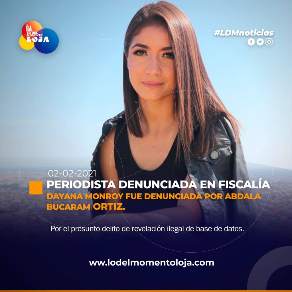 La periodista de Teleamazonas, Dayanna Monroy reveló que ha sido denunciada en la Fiscalía General del Estado, por Abdala Bucaram Ortiz, por el presunto delito de revelación ilegal de base de datos. El Fiscal a cargo del caso Javier Pucha Paguay, ha solicitado al SRI, Superintendencia de Bancos, Superintendencia de Compañías, Registraduría de la Propiedad y la UAFE que se levanten informes sobre su patrimonio.