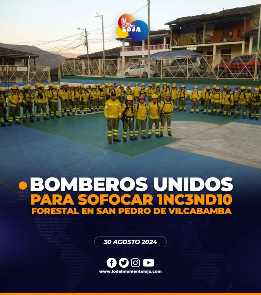 👨🏻🚒🔥🚨¡Se dan una mano! Un total de 59 efectivos bomberiles (de Loja, Malacatos y Vilcabamba), se han unido para liquidar el 1nc3nd10 forestal registrado en la parroquia de San Pedro de Vilcabamba, que lleva consumiendo la vegetación desde horas de la noche del 29 de Agosto.