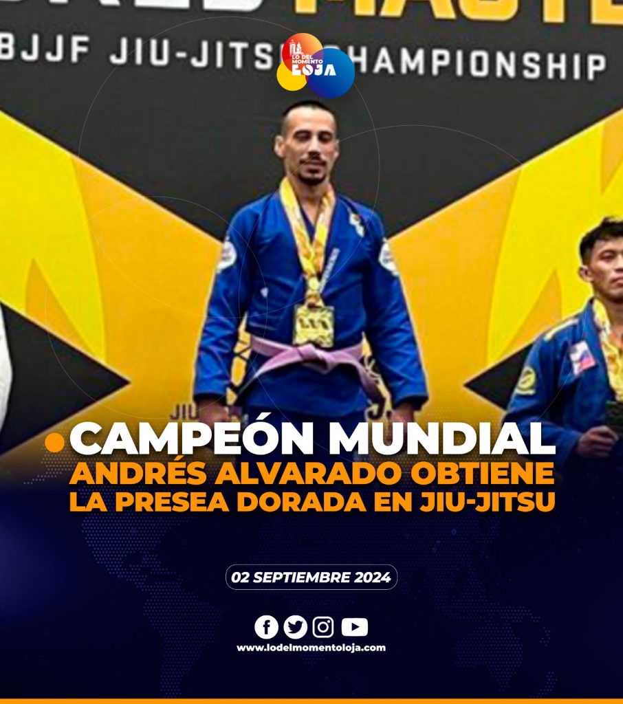 🇪🇨👏🏻🥇 ¡Digno representante! El ecuatoriano Andrés Alvarado, logró adjudicarse la medalla de oro y se convirtió en el campeón del Mundial Master de Jiu-Jitsu qué se realizó en Las Vegas (EE.UU), en la división Peso Pluma, cinturón violeta, derrotando al local Raymond Yagloski Jr.
