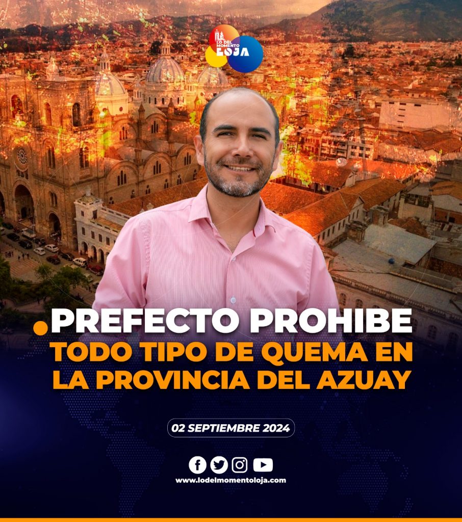 👏🏻🚫🔥 ¡Así se toma decisiones! El Prefecto de Azuay y presidente del COE Provincial, Jota Lloret Valdivieso, hizo pública una resolución, en la cual aclara que QUEDA PROHIBIDO, cualquier tipo de quema, incluyendo las que sean con fines agrícolas o pecuarios, a nivel provincial. Además, han solicitado ante Fiscalía, para que investigue los graves atentados contra la naturaleza que se han dado en los últimos días.
