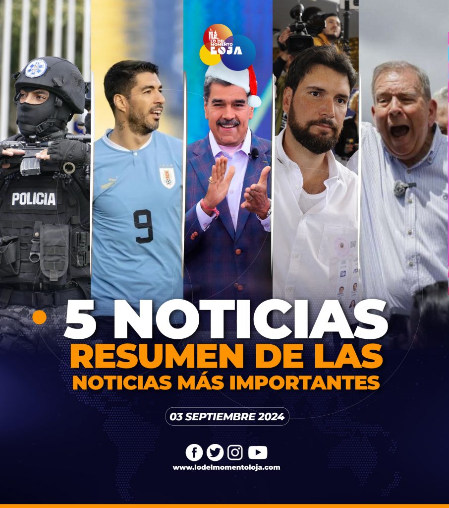 🧐🤳⏳ ¡El resumen en 5 noticias! Policia entregó manual para uso legítimo de la fuerza, Luis Suárez jugará su último partido con Uruguay, Nicolás Maduro adelantará Navidad al 1ro de Octubre, rechazan candidatura de Topic, Ecuador rechaza orden de arresto para Edmundo González.