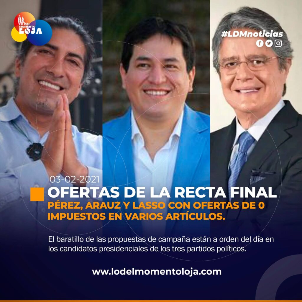 A pocos días de darle las votaciones que definirán al próximo presidente de la república del Ecuador, los candidatos de tres diferentes agrupaciones políticas han comenzado a comunicar ofertas de reducir a 0 impuestos en varios artículos de consumo y uso en los ciudadanos.