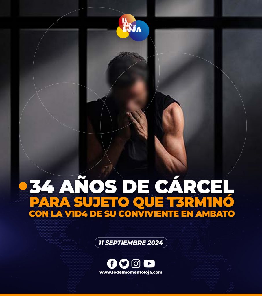 ¡Por pena agravada! Un sujeto fue s3nt3nc14do por el f3m1c1d10 de su conviviente cuyo c4dáv3r pretendía incinerar tras el suceso. La Fiscalía detalló que el acusado fue detenido antes de intentar su1c1d4rs3 y recibió una sentencia de 34 años y 8 meses de cárcel. Este hecho se registró en Huachi Grande, Ambato.