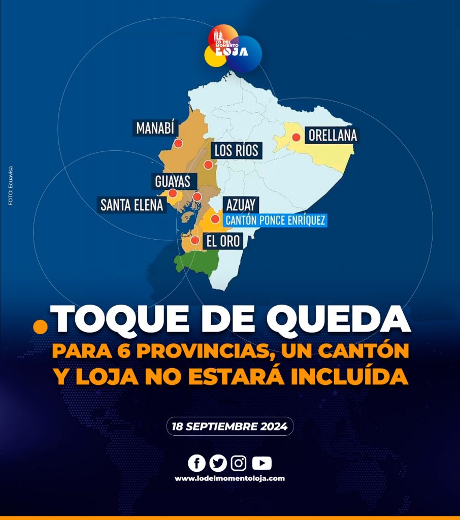 🤔👮🏻♂️🚨 ¡Durante apagones! El presidente de la República, Daniel Noboa, mediante Decreto Ejecutivo, dispone toque de queda en varias provincias del país en el marco del estado de excepción. Esta medida regirá desde las 22:00 pm de este 18 de septiembre hasta las 06:00 am del 19 de septiembre de 2024. Las provincias afectadas por la medida incluyen Guayas, Los Ríos, Manabí, Orellana, Santa Elena, El Oro, y el cantón Camilo Ponce Enríquez de la provincia de Azuay.
