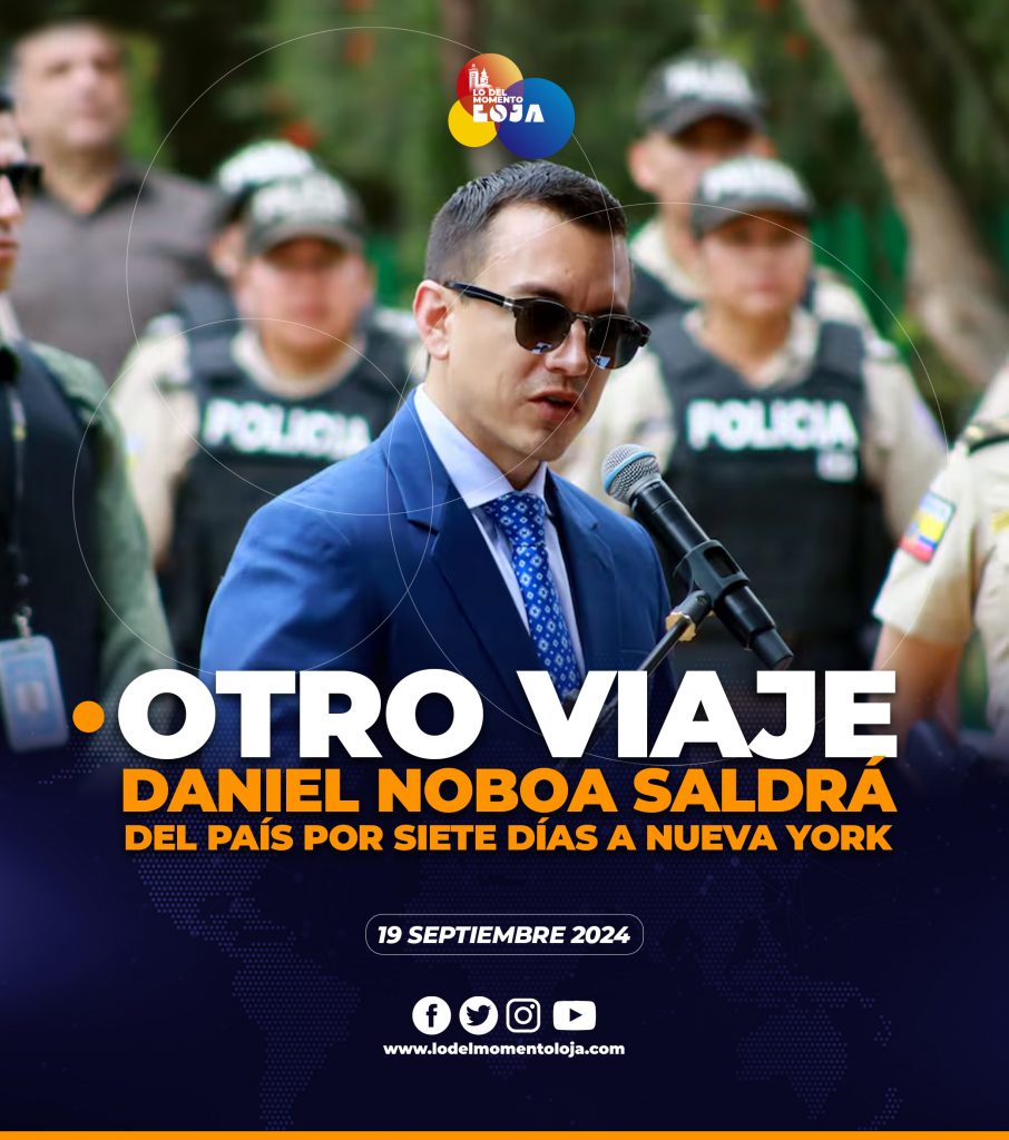 🤷🏻♂️🛩️🗽 ¡Y se marchó! El presidente Daniel Noboa saldrá de Ecuador entre el 20 y 27 de septiembre de 2024, en medio de una crisis energética que vive el país. Según el Decreto N° 395, el primer mandatario viajará a Nueva York y en su agenda también tiene como destino Boston y New Haven. El viaje oficial se da en el marco de la Semana de Alto Nivel de la 79° sesión de la Asamblea General de Naciones Unidas (ONU).