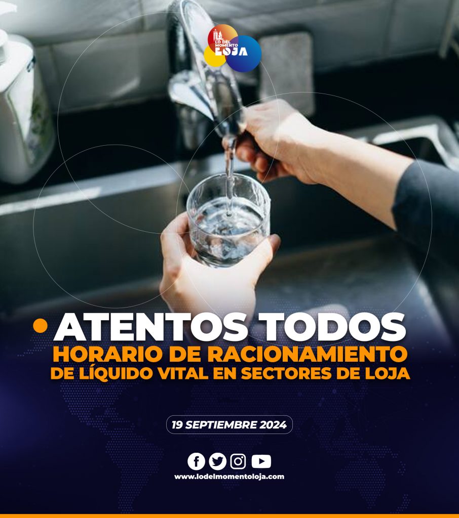 😱💦🚒 ¡Pilas con el horario! El Municipio de Loja informa que, debido al estiaje en la planta de tratamiento de agua potable de Curitroje-Chontacruz, se ha establecido un horario de racionamiento de agua, en las viviendas lojanas, mismo que va de 14h00 a 06h00 de lunes a domingo. Los sectores que se verán afectados son: Barrio Víctor Emiliano Valdiviezo, Colinas Lojanas y el sector sur occidental.