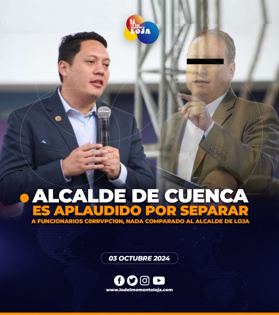 👀🚫🗣️ ¡Cuestionables decisiones! Mientras el alcalde de Cuenca es aplaudido por haber separado a funcionarios que, aparentemente, estaría involucrado en un caso de aparente corrupción por haber, cobrado recursos económicos a cambio de eliminar rubros adeudados; en la ciudad de Loja, el panorama, es todo lo contrario, puesto que las aparentes irregularidades que envuelven a la actual administración, aún no tienen respuesta, incluso acogiendo al derecho del silencio para así evitar, dar mayores detalles lo sucedido ¿Usted de opina?