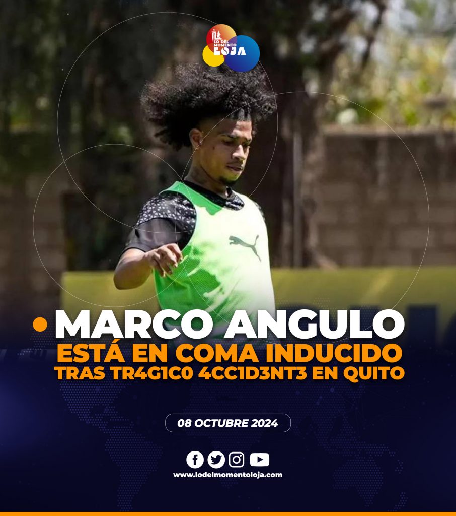 🚨😱🏥¡Actualización! Tras cumplirse las primeras 24 horas desde su siniestro de tránsito ocurrido en la madrugada del lunes en la Autopista General Rumiñahui, el mediocampista ecuatoriano Marco Angulo fue llevado al estado de coma inducido, luego de haber superado con éxito una operación de craniectomía descompresiva. Según el Dr. Carlos Veintimilla, aún se mantiene en cuidados intensivos en el hospital Eugenio Espejo de Quito.