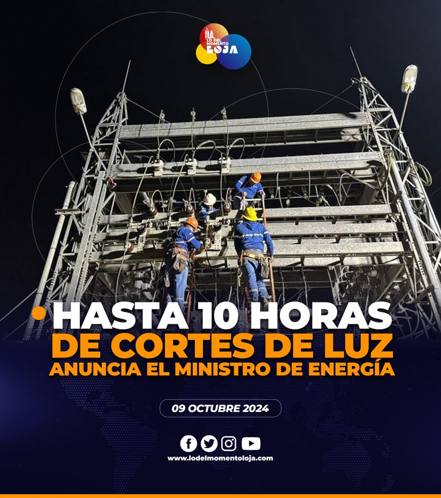 ⚡😱🗣️ ¡Reprogramación de los cortes! La mañana de este miércoles 09 de octubre de 2024, el ministro de Energía, Antonio Goncalves anunció que los cortes de energía serán de hasta 10 horas en todo el territorio ecuatoriano debido a la crítica situación que atraviesa el embalse de Mazar.
