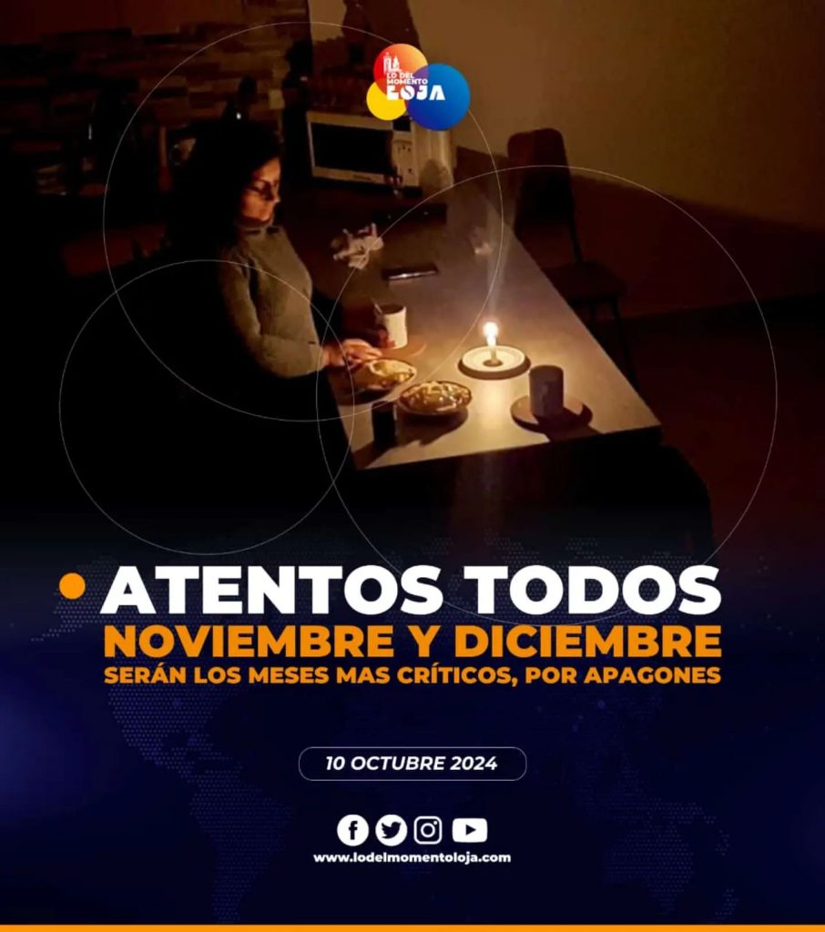 Noviembre y Diciembre serán los meses más críticos por apagones.