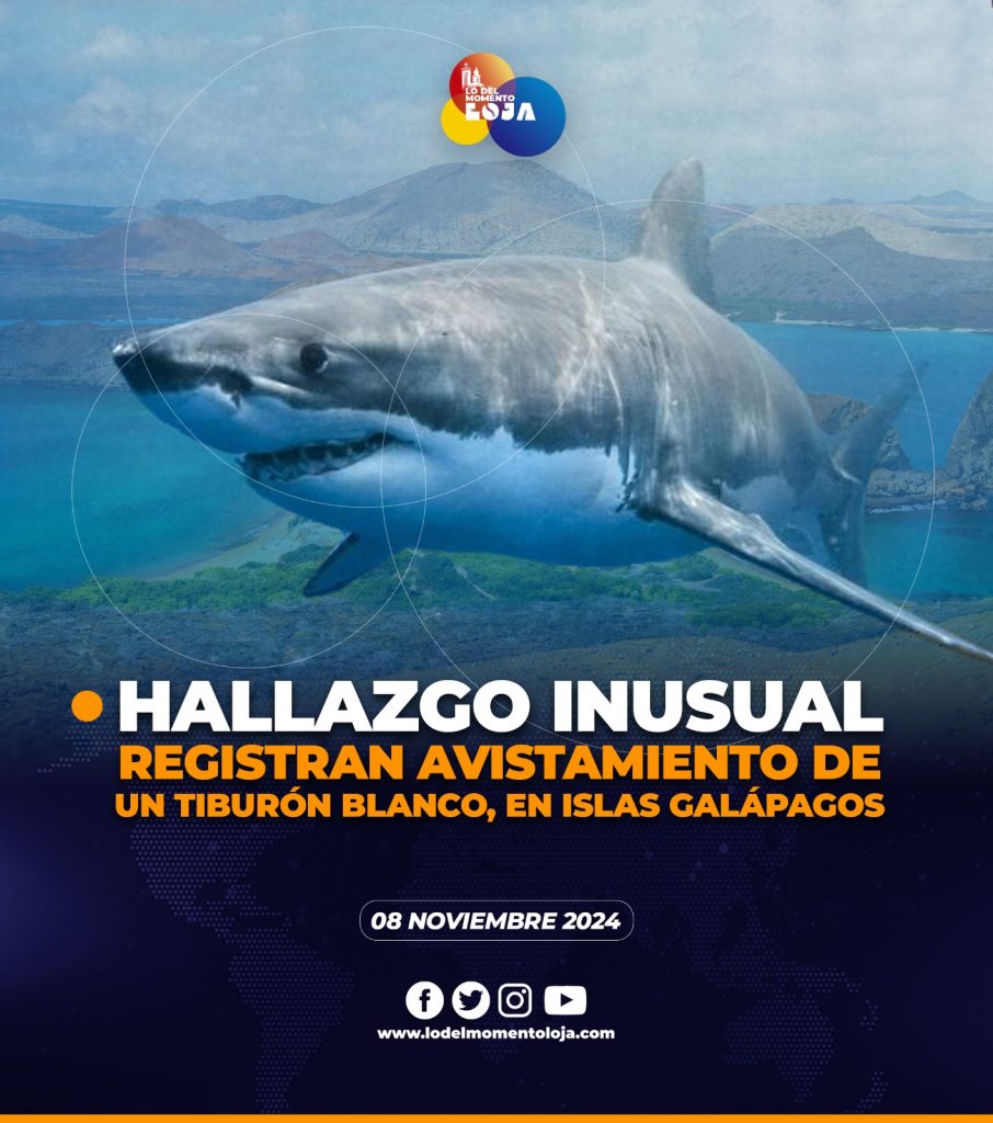 😱📽️🦈 ¡Por primera vez! El primer registro documentado de un tiburón blanco (Carcharodon carcharias) en aguas ecuatorianas, cerca del archipiélago de Galápagos, ha sido confirmado por la Dirección del Parque Nacional Galápagos (DPNG) y la Fundación Charles Darwin (FCD). La presencia de esta especie causó interés en los científicos, pues este pez no habita en aguas tropicales y permanece, generalmente, en regiones templadas y subtropicales.