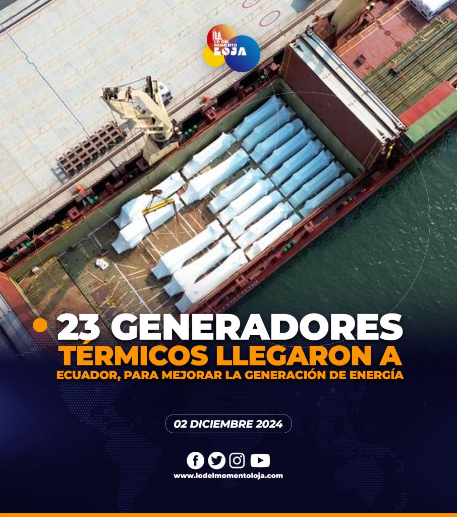 😱💡⛴️ ¡Serán de ayuda! Este 01 de diciembre, llegaron a Guayaquil un total de 23 generadores térmicos de la contratista estadounidense Progen para el proyecto Salitral, así lo confirmó el Ministerio de Energía, con lo cual buscan mejorar la generación de energía en Ecuador. En los siguientes días se prevé la llegada del equipo auxiliar necesario para la instalación y las pruebas correspondientes y finalmente empezar la generación de energía.