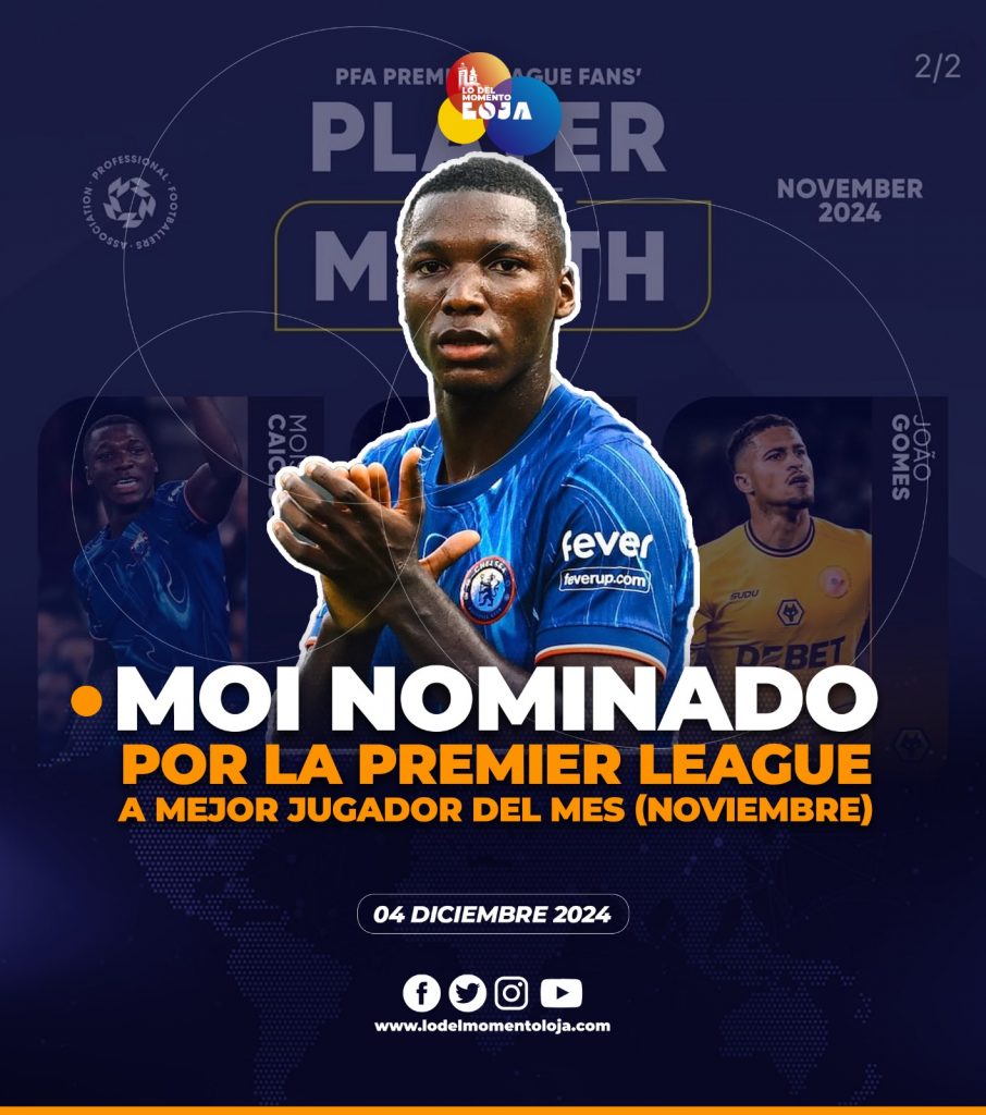 ✅⚽👏🏻¡Entre los grandes! El ecuatoriano Moisés Caicedo fue nominado al mejor jugador del mes de noviembre, por la PFA (Proffesional Footballers’ Asociation) de Inglaterra, por sus actuaciones destacadas con Chelsea. El mediocampista del Chelsea compite contra Matheus Cunha (Wolverhampton), Joao Gomes (Wolverhampton), James Maddison (Tottenham), Joao Pedro (Brighton) y Mo Salah (Liverpool).