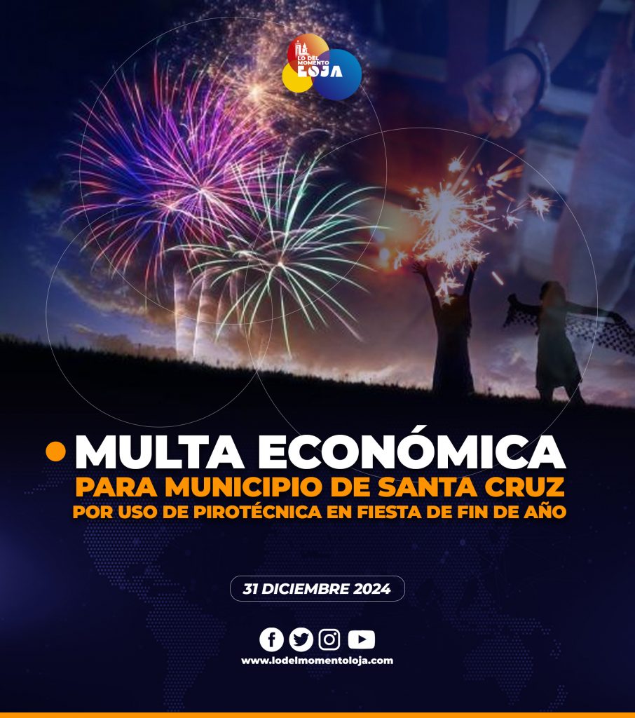 ¡Un año después! A través de un comunicado La Dirección del Parque Nacional Galápagos sancionó con USD 2 484 dólares al Gobierno Autónomo Descentralizado Municipal de Santa Cruz, provincia de Galápagos. Dicha sanción responde al uso de pirotécnia durante un evento realizado el pasado 31 de diciembre del 2023. La autoridad Ambiental emitió la resolución tras constatar el incumplimiento de la normativa ambiental en el archipiélago, misma que prohíbe este tipo de actividades por su impacto en el medio ambiente.
