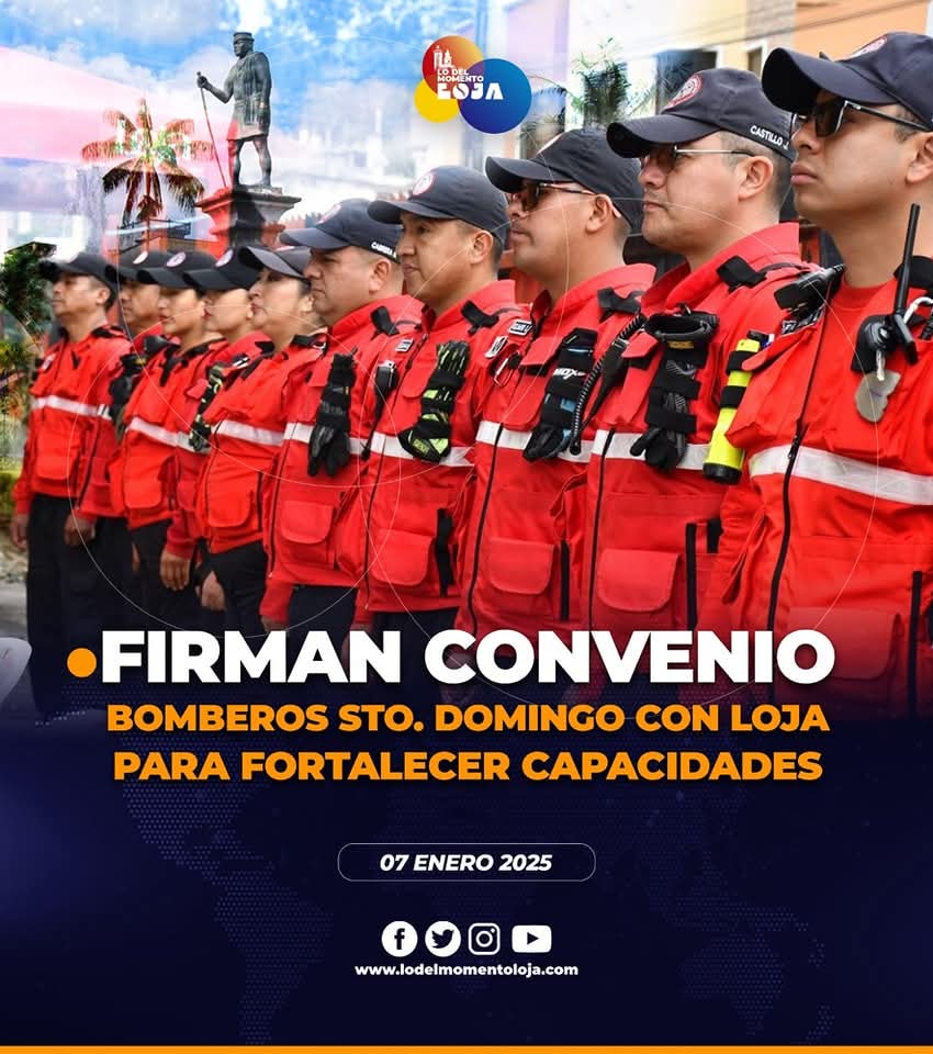 🧑🚒✍️🤝 ¡Para trabajar juntos! El Cuerpo de Bomberos de Loja y el Cuerpo de Bomberos GAD Municipal Santo Domingo han logrado firmar un convenio de cooperación interinstitucional con duración de dos años (con la posibilidad de renovación por igual período), para fortalecer la capacitación y asesoría en áreas operativas y administrativas de los casacas rojas. Con ello buscan potenciar la capacidad de respuesta ante emergencias y garantizar la seguridad y atención de la comunidad.