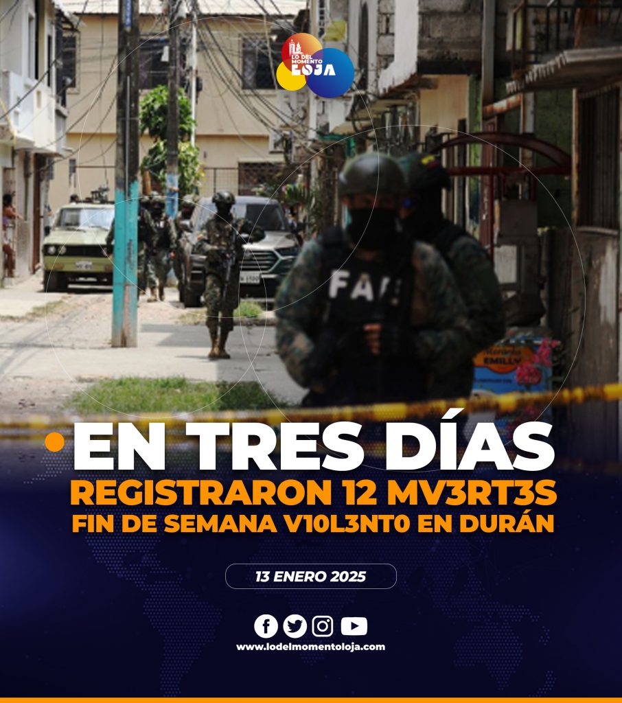 ¡Tierra de nadie! Entre el viernes 10 y el domingo 12 de enero, en Durán se registraron al menos 12 muertes violentas, de acuerdo con reportes de la Policía. Este cantón de Guayas se mantiene en estado de excepción. Las muertes violentas en el mismo se atribuyen a la disputa entre dos bandas criminales según informó el jefe de Policía de Durán.