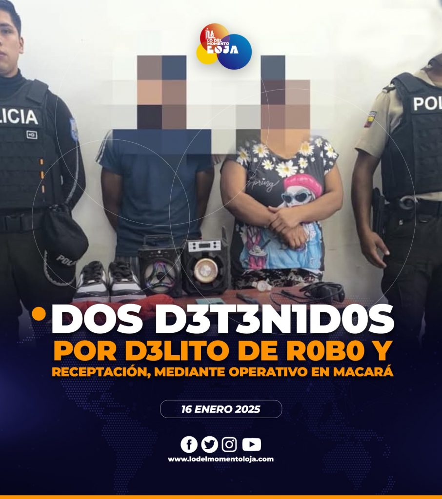 😱🚨👮🏻♂️ ¡A pagar cana! A la altura de las calles Bello Horizonte y Juan Arroyo de la ciudad de Macará, la Policía Nacional, procedió a la d3t3nc1ón de dos ciudadanos por el d3l1t0 de r0b0 y receptación. Esto tras haber ingresado a un domicilio, del cual se sustraen 700 dólares, un cilindro de gas, un reloj, un celular y un parlante.