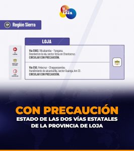 🛣️⚠️🛻 ¡Maneje con cuidado! El Ministerio de Transporte y Obras Públicas (MTOP) actualizó el estado de la red vial a nivel nacional con la finalidad de que la ciudadanía este informada y pueda transitar acorde a la situación, en el caso de la provincia de Loja, las lluvias provocaron algunos deslaves en dos vías, como es: Velacruz-Chaguarpamba y Vilcabamba-Yangana, aunque ambas se encuentran con una habilitación se sugiere que vayan con precaución.