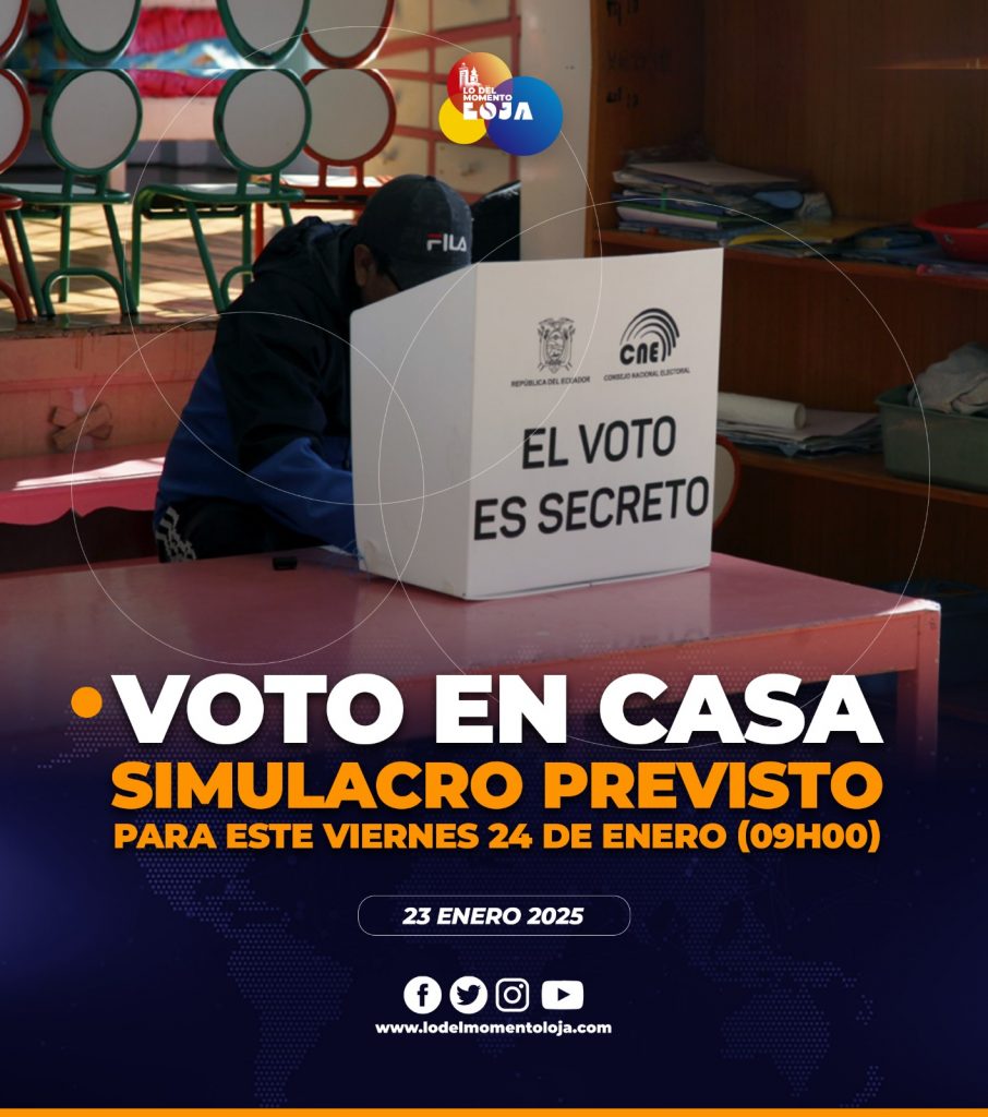 ☑️🗳️🏠 ¡Elecciones 2025! Desde la Junta y la Delegación Provincial Electoral de Loja, se invita a la ciudadanía al Simulacro de Voto en Casa, que se realizará este Viernes 24 de enero del 2025, a partir de las 09h00, a la altura la calle Agustín Carrión Palacios y Av. Salvador Bustamante Celi, en el Centro de Procesamiento Electoral (Complejo Ferial).