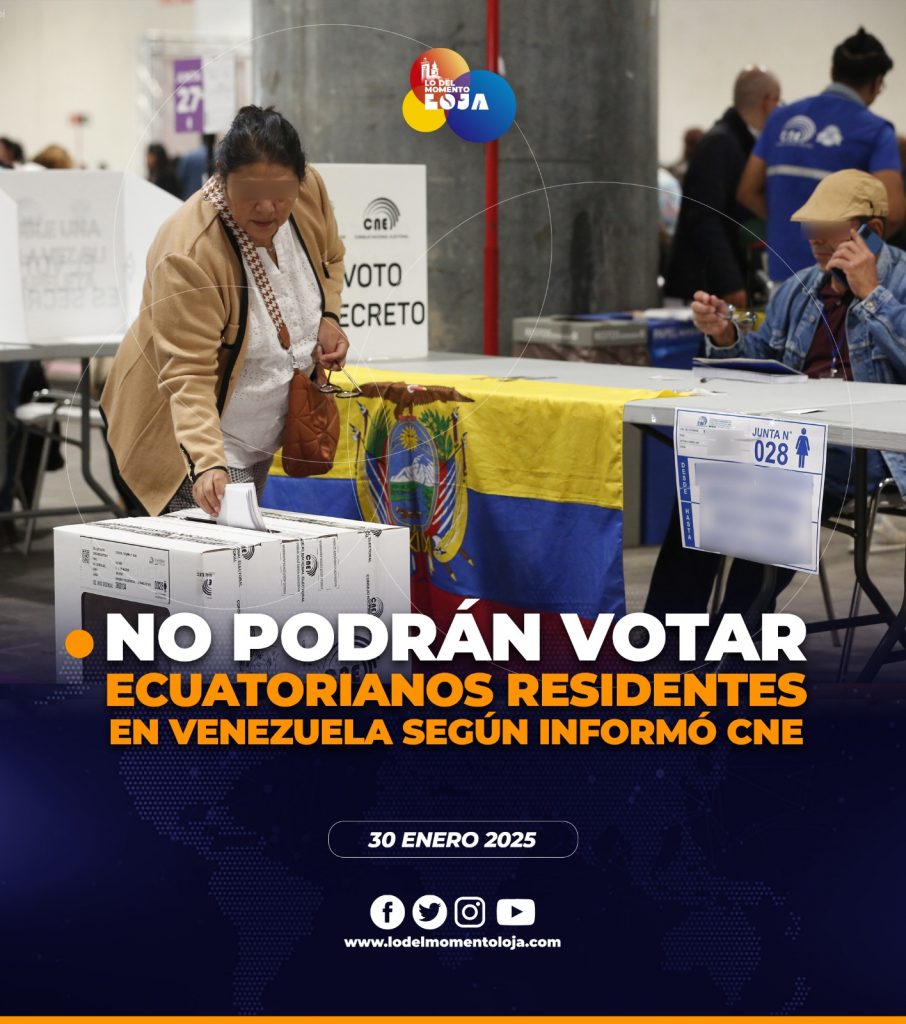 😱🗳️✍🏻 ¡Demora en su respuesta! A través de un comunicado, el Consejo Nacional Electoral (CNE) ha informado que, debido a retrasos en la respuesta del Gobierno de Venezuela, no será posible garantizar el derecho al voto de los ciudadanos ecuatorianos residentes en ese país, durante las Elecciones Generales de 2025, el próximo 9 de febrero. Es por ello que aproximadamente más de 10,000 ecuatorianos quedarán imposibilitados de participar en los comicios, en los que se elegirá al próximo presidente del Ecuador, además de otras dignidades nacionales.