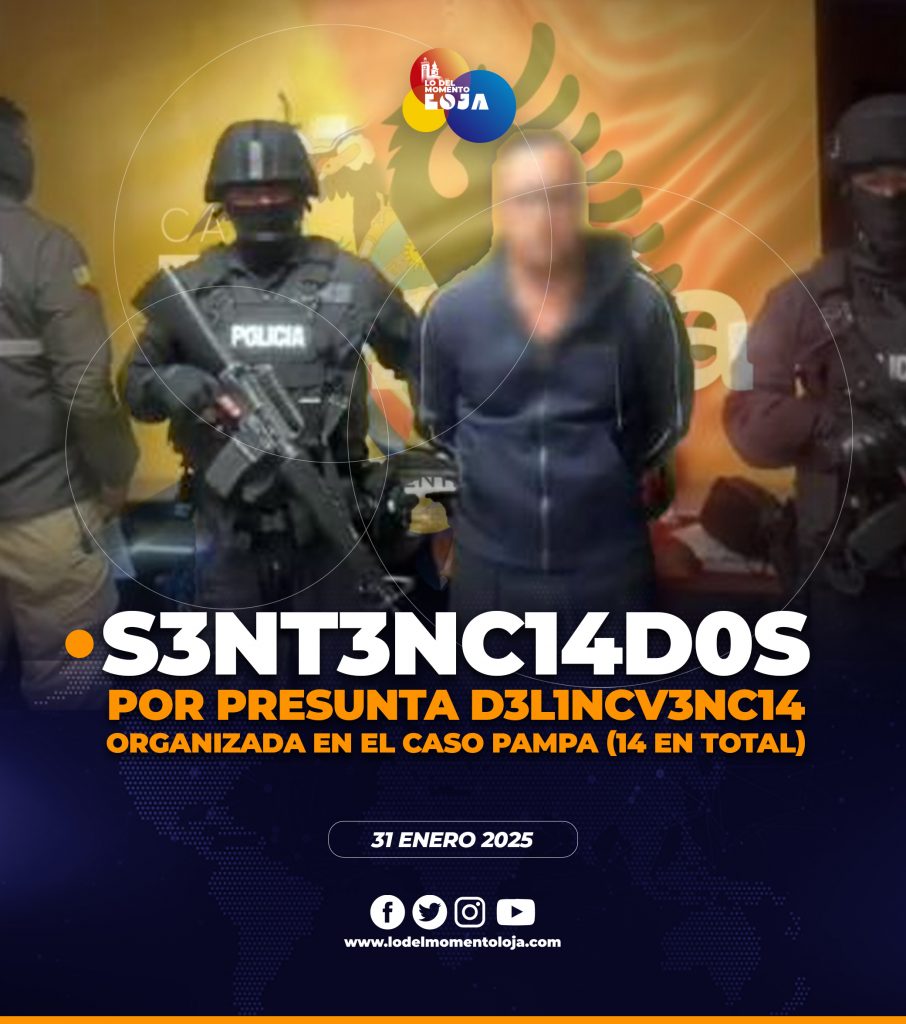 😱🇪🇨👉 ¡Caso Pampa! 14 personas que, aparentemente, estarían vinculadas con la mafia albanesa fueron sentenciados a prisión por el presunto d3l1t0 de delincuencia organizada en el caso Pampa. Según la Fiscalía, los sentenciados formarían parte de una organización d3l1ct1v4 dedicada al n4rc0tr4f1c0 transnacional que estaría liderada por el albanés Dritan G., Mario S., y Carlos G., de nacionalidad argetina y ecuatoriana respectivamente.