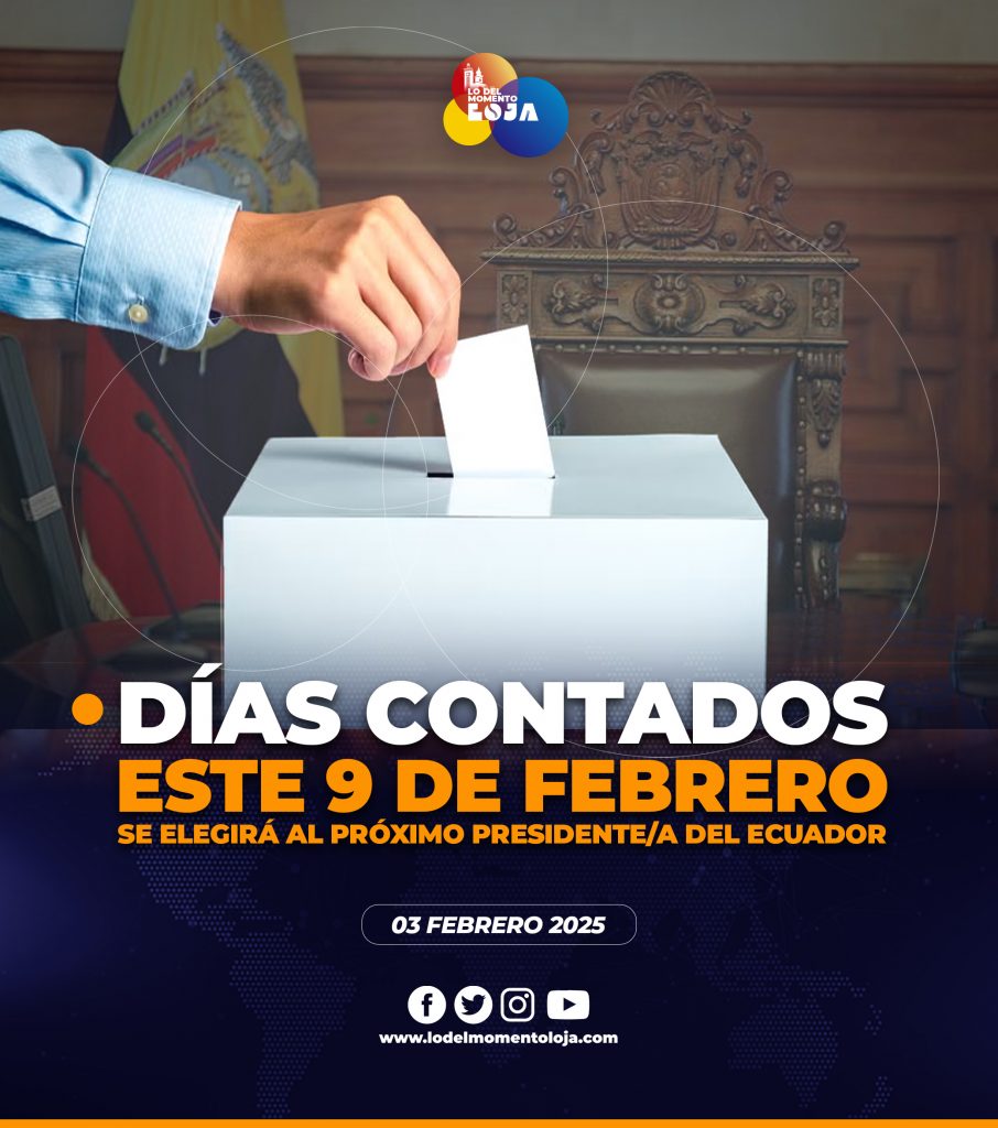 🇪🇨🗳️☑️ ¡A pocos días! El próximo 9 de febrero del 2025, los ecuatorianos acudirán a las urnas para elegir al nuevo Presidente o Presidenta del Ecuador, quien asumirá el cargo hasta el 2029, teniendo un total de 16 binomios como candidatos presidenciales. Además también se escogerán a asambleístas y representantes al Parlamento Andino.