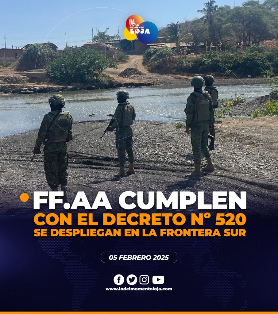 🚨🪖⚠️¡A hacer caso! Miembros de la Brigada de Infantería N°7 “Loja”, a través de sus unidades orgánicas, se encuentran desplegadas en la frontera sur de Ecuador en la provincia de Loja y parte de Zamora Chinchipe. Esta acción se lleva a cabo en cumplimiento al Decreto Ejecutivo N° 520, el cual determina el cierre de las fronteras terrestres del país a fin de garantizar la seguridad y el orden público durante las elecciones generales programadas para el domingo 9 de febrero de 2025.