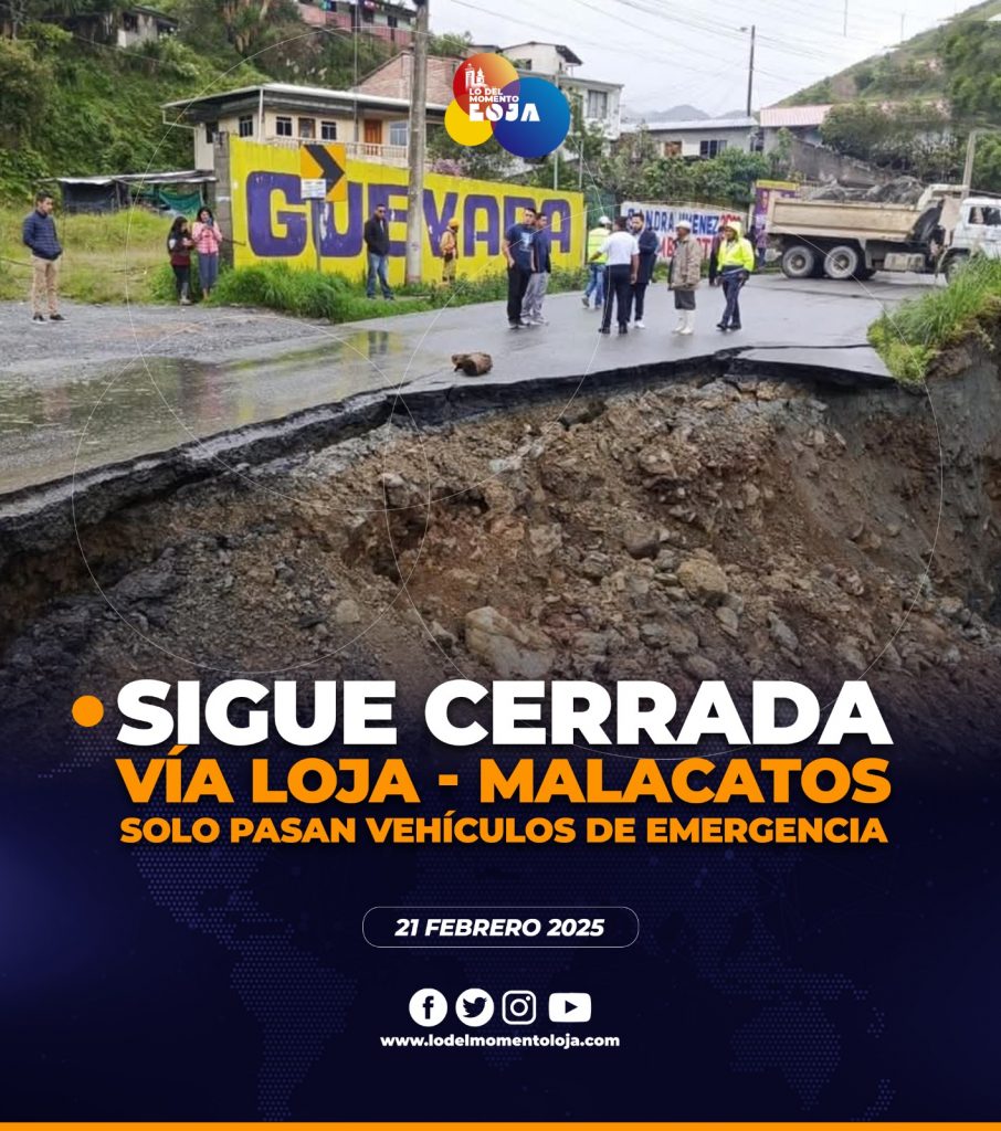 ¡Pilas con eso! Desde de la Dirección de Movilidad, Tránsito y Transporte de Loja, informa que la vía Loja – Malacatos continúa cerrada, al momento solamente se permite el paso a vehículos de emergencia, además agentes de tránsito se encuentran en el sitio realizando los controles respectivos. A quienes transiten por el lugar, deberán tomar la vía alterna (Catamayo – El Tambo – Malacatos).