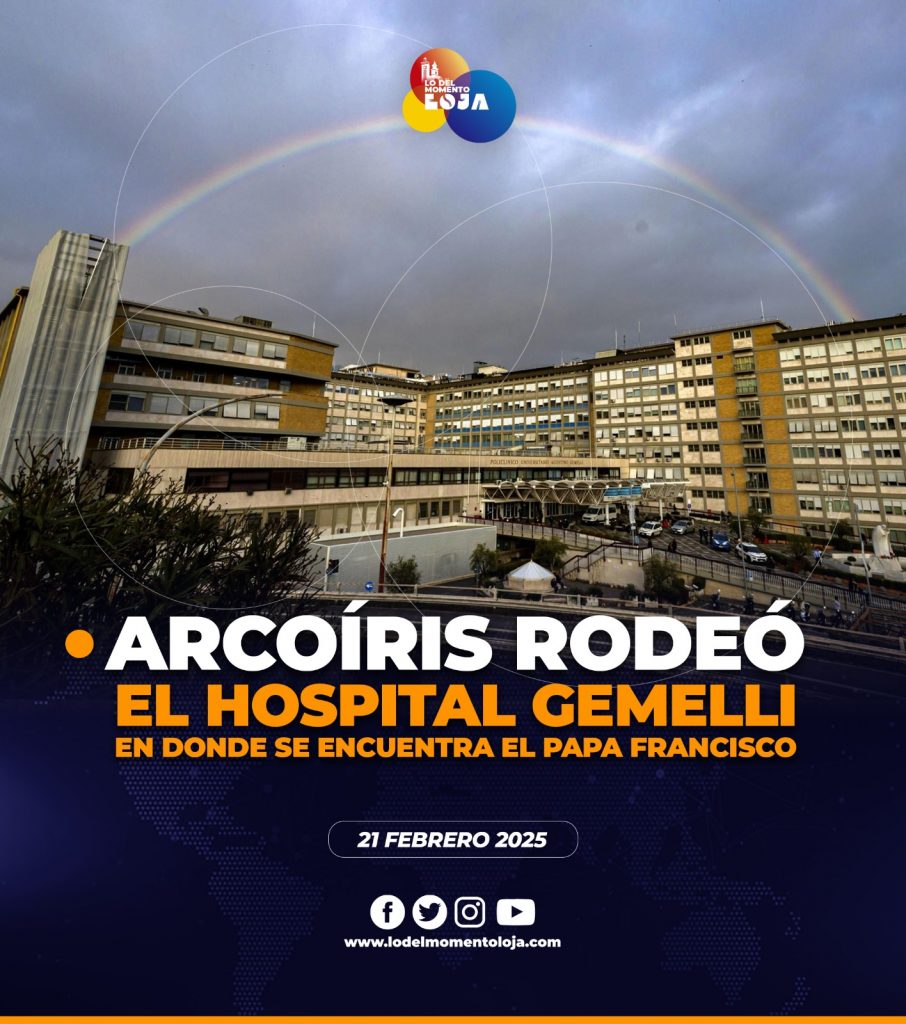 🌈🙏🏻🕊️¿Es una señal? Sobre el hospital Gemelli, en Roma, lugar donde el Papa Francisco ha estado hospitalizado desde el viernes 14 de febrero, un arcoíris apareció y fue interpretado por fieles católicos como un símbolo de esperanza y recordatorio de la alianza divina. Mientras tanto, el estado de Francisco, de 88 años, continúa en leve mejoría, a pesar de que su cuadro de salud sea “complejo”.