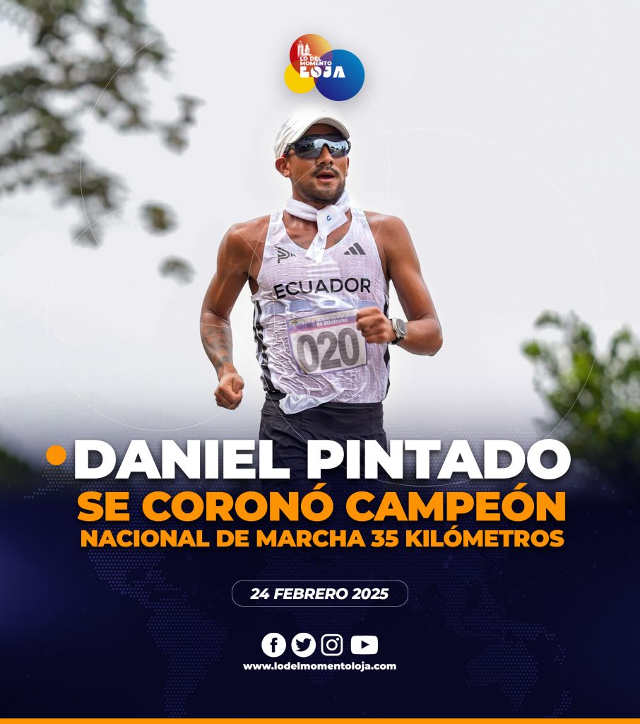🇪🇨🏃🏻🥇¡Aplaudan al campeón! Durante el fin de semana, el ecuatoriano Daniel Pintado se consagró campeón nacional de Marcha en la prueba de 35 kilómetros que se disputó en disputó en Sucúa, Morona Santiago. Esta es la primera prueba del campeón olímpico en este 2025, preparándose para el Mundial de Atletismo que se desarrollará en Tokio.