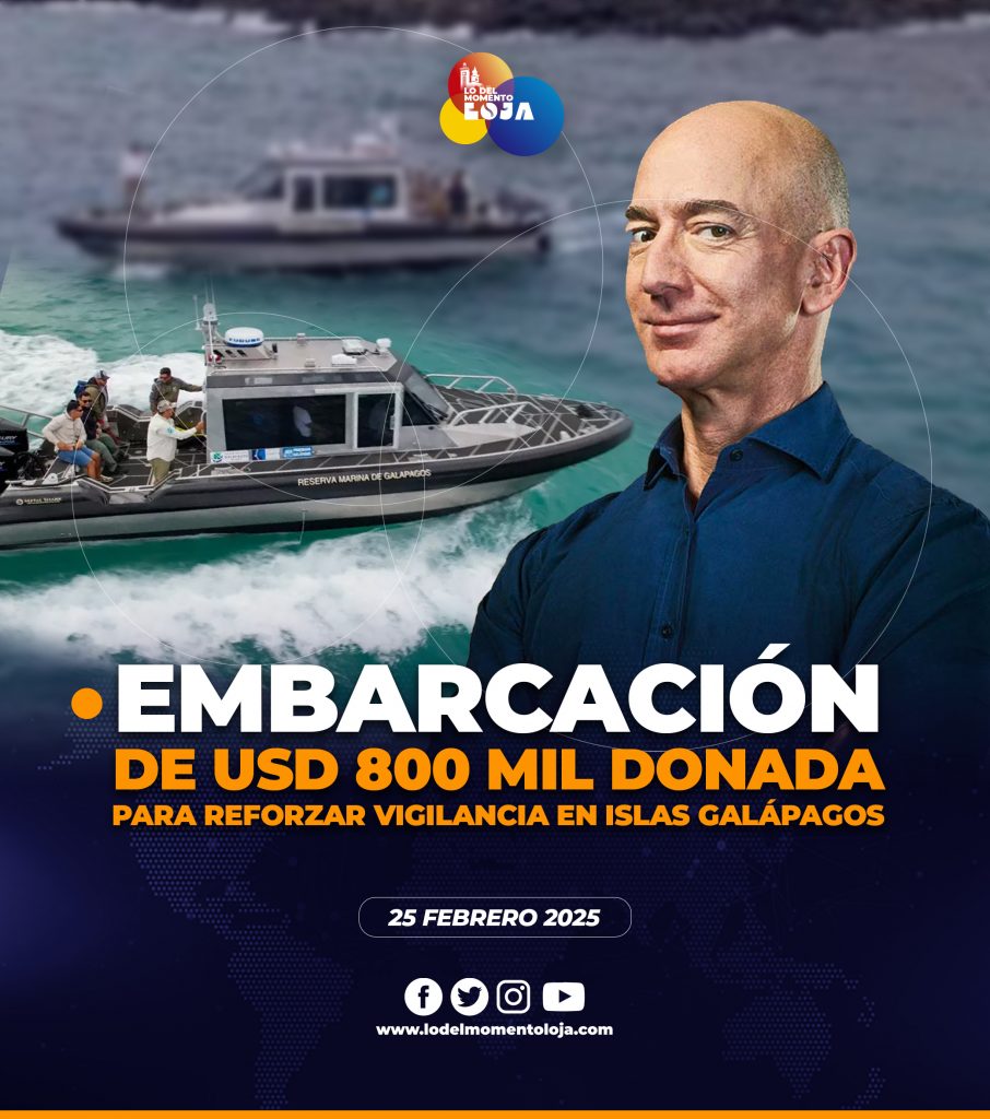 🇪🇨🚤🚨¡Una gran ayuda! Una embarcación, valorada en unos 800 000 dólares y donada por el magnate estadounidense Jeff Bezos, fundador del gigante tecnológico Amazon, se sumará a las labores de patrullaje y control en las Islas Galápagos. ‘Bezos Earth Fund‘, entregó la embarcación interceptora Defiant 38 Metal Shark ‘Centinela’ a la Dirección del Parque. Además está equipada con tecnología de comunicación y seguridad, como sistemas de radar, GPS, identificación automática (AIS), iluminación LED y un sistema de acondicionamiento acústico que mejora la experiencia operativa.