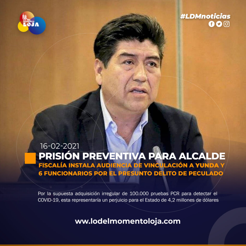 La Fiscalía General del Estado, instaló la audiencia de vinculación del Acalde Jorge Y. M., y 6 personas más a la instrucción fiscal abierta por parte de FGE, por el presunto delito de peculado en la compra irregular de 100.000 pruebas para COVID-19.
