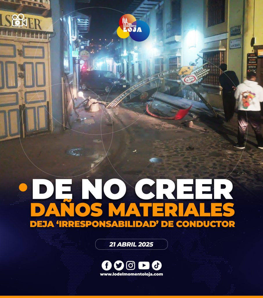 🤯🚘🚨 ¡Severos daños materiales! El conductor de un Vitara se estrelló contra el arco metálico ubicado en la calle Lourdes, una de las zonas más representativas de la ciudad. El aparatoso accidente se registró en horas de la madrugada del 20 de abril durante el feriado por Semana Santa, provocando cuantiosos daños materiales, no solo para el propietario del automotor, sino también, para los lojanos, ya que una obra emblemática se vio gravemente afectada, por la aparente negligencia de un ciudadano que, presuntamente, se encontraba bajo los efectos del alcohol.