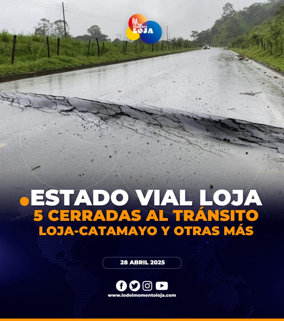 🚫 Loja – Catamayo: CERRADA / La vía nueva permanece cerrada desde las 19h00 del día de ayer sábado 26/04/2025 hasta las 28/04/2025 / Maquinaria se encuentra realizando trabajos de nivelación de la calzada en el sector El Plateado, por lo que el tránsito vehicular fluye por la vía antigua.