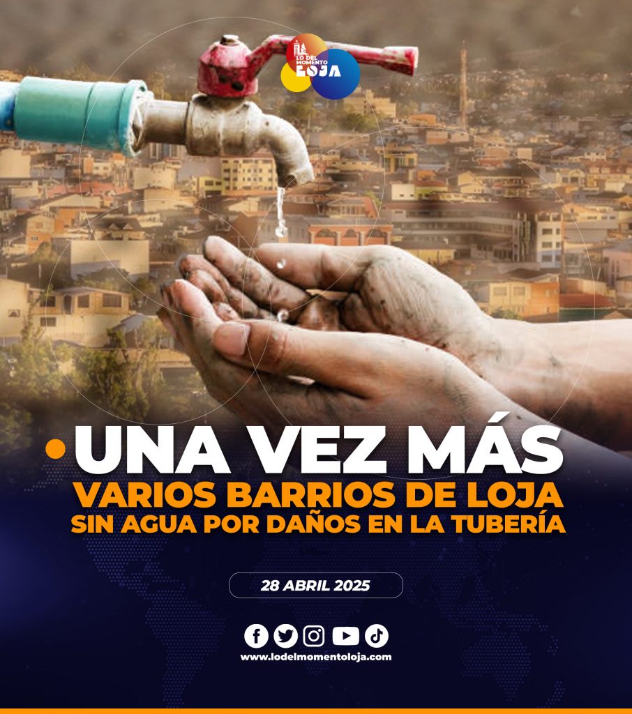 😱🚫💧¡Cuento de no acabar! Desde el Municipio de Loja, se informa que la madrugada del lunes 28 de abril, se produjeron dos daños en la transmisión sur (Sector El Plateado y Av. Villonaco), situación que dejará sin el servicio de agua potable a los barrios Julio Ordóñez, Ciudad Alegría, Las Ramblas, La Laguna, Zarzas II, Sultana del Sur, Sol de los Andes, Juan José Castillo, Ciudad Victoria, Miraflores, Época. Se coordinará tanqueros para que se distribuya el líquido a estos sectores. Con respecto al resto de barrios se presentará disminución de caudal.