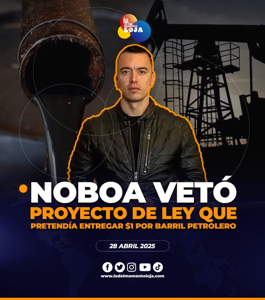 Desde el Vaticano, la mañana de este 28 de abril de 2025 el presidente Daniel Noboa vetó el proyecto de ley que pretendía la entrega de $1 por barril petrolero industrializado para las provincias de Esmeraldas, Santa Elena y Sucumbíos.