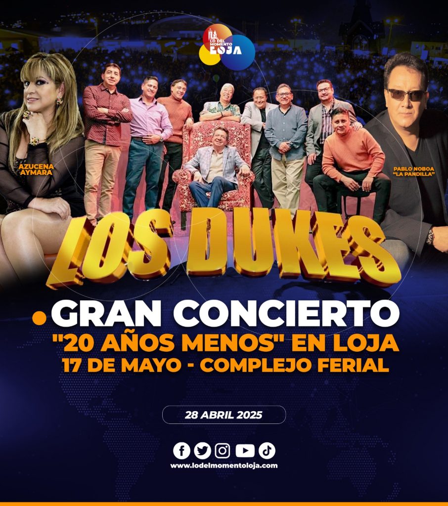 👨🏻🎤🎸🌹¡Homenaje a mamá! Loja vivirá un concierto inolvidable, para homenajear a la reina del hogar, con las presentaciones especiales de la icónica Azucena Aymara, además el sentimiento de Pablo Noboa (Ex vocalista de La Pandilla) acompañado de la Sinfónica Municipal de Loja, el reencuentro de LOS DUKES y el talento internacional, desde Venezuela, Los Adolescentes para bailar y disfrutar al puro ritmo de la salsa.