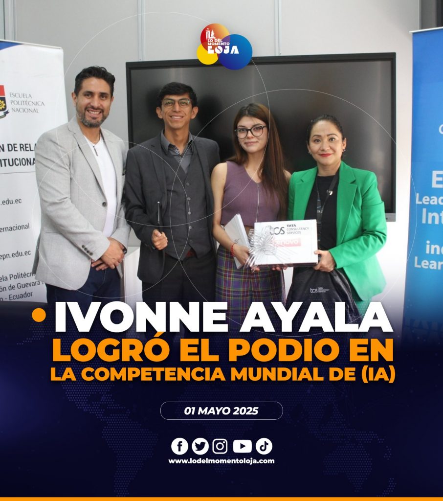 👩🏻💻🤓📲 ¡Orgullo ecuatoriano! Ivonne Ayala es una estudiante ecuatoriana de la Escuela Politécnica Nacional que, a sus tan solo 20 años de edad logró subirse al podio en la competencia de Inteligencia Artificial (IA). El concurso organizado por Tata Consultancy Services (TCS) y avalado por el Guinness World Records como el concurso más grande de programación mundial, llevó a cabo su 12ava edición que atrajo a más de 537.000 participantes de 96 países y, una ecuatoriana logró quedarse con el tercer lugar del podio en la categoría femenina, Ivonne destacó entre miles de participantes de diversos países, demostrando su talento, pasión por la tecnología, ingenio y perseverancia.