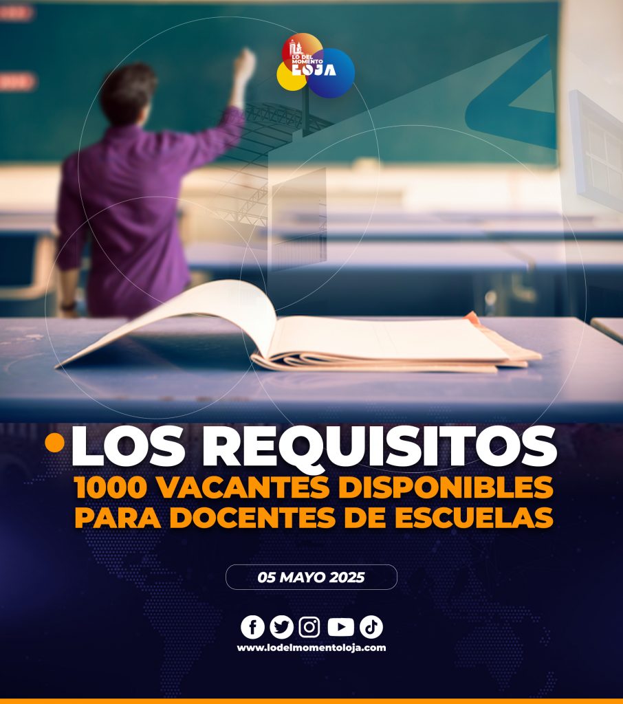 👨🏻🏫🏫📚¡Pilas con los requisitos! A partir del 6 de mayo, en la plataforma www.educacion.gob.ec, las personas profesionales en la rama de la docencia podrán postular para ser parte de las 1.000 vacantes habilitadas en instituciones fiscales del Ecuador, en las especialidades de bachillerato técnico e inglés. El Ministerio de Educación informó que los elementos que se analizarán serán la experiencia, la aptitud y las condiciones para formar parte de las diferentes unidades educativas gubernamentales a nivel nacional.