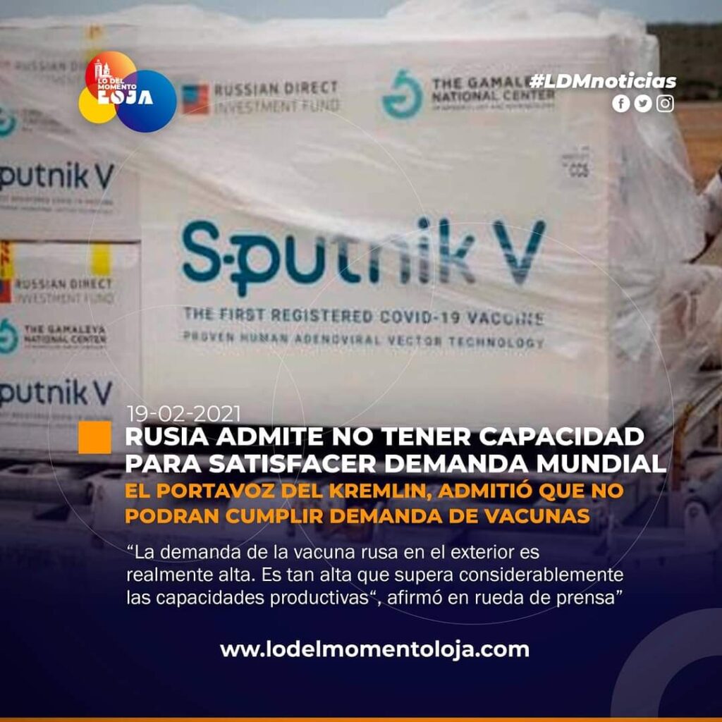 El portavoz del Kremlin, Dmitri Peskov, afirmó que la vacunación nacional es la prioridad de su país, por lo que están concentrados en movilizar todas las capacidades de producción para el mercado interno.