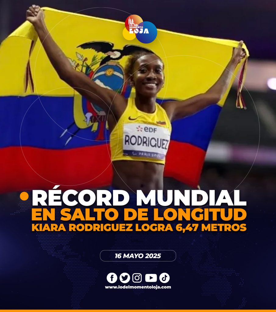 🇪🇨🏅🏃🏻♀️¡Orgullo tricolor! La atleta ecuatoriana Kiara Rodríguez estableció un nuevo récord mundial en Salto de Longitud, al imponer una distancia de 6,47 metros. Esta marca la hizo en el Grand Prix de Para Atletismo que se disputa en Cali. Con este salto, Kiara no solo mejora su marca personal, sino que también establece un nuevo estándar en su categoría, consolidándose como una de las mejores atletas paralímpicas del planeta.