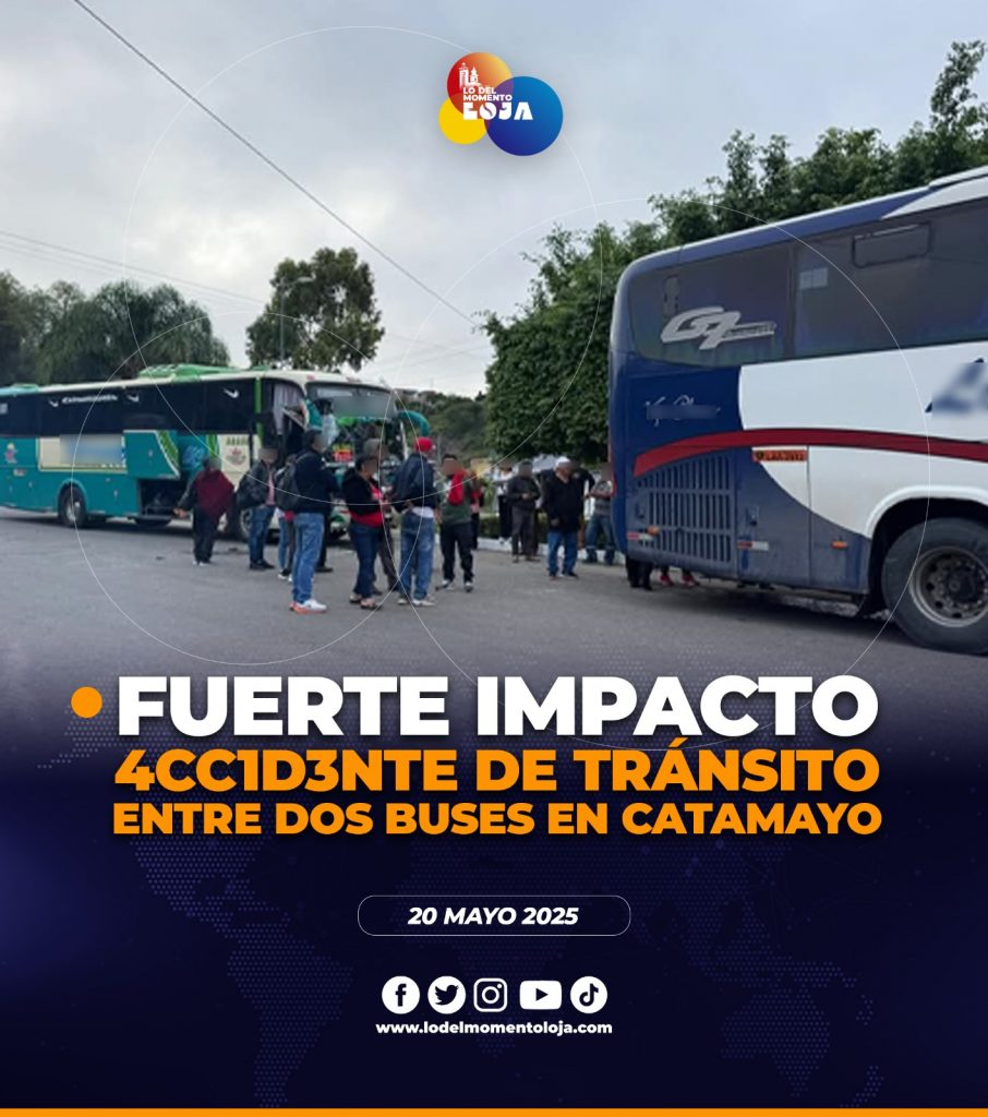 🚍💥🪟¡Se dieron duro! A la altura del redondel La Botella, en el cantón Catamayo, se registró un 4cc1d3nte de tránsito entre dos buses, que deja como saldo cuánto daños materiales. Al lugar acudió Policía Nacional para atender el suceso.